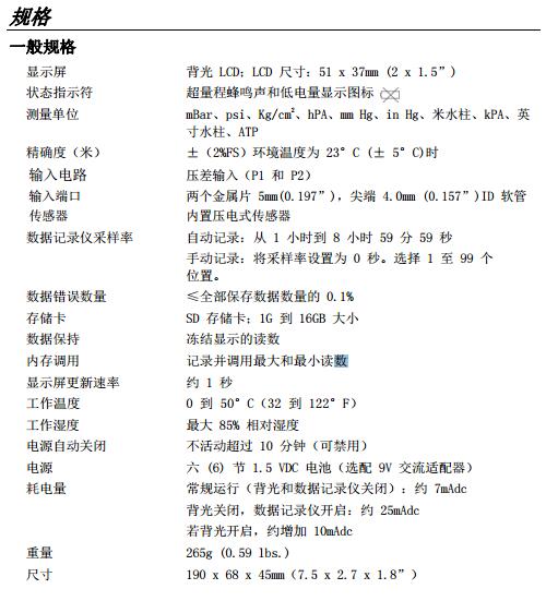 SDL720 型壓力計(jì)。該設(shè)備測(cè)量壓力表和±29 psi 范圍內(nèi)的壓差。支持的測(cè)量單位包括 bar、psi、Kg/cm2、毫米汞柱、英寸汞柱、米水柱、英寸水柱、標(biāo)準(zhǔn)大氣壓力、hPA 及 kPA。記錄的數(shù)據(jù)讀數(shù)保存在 SD 卡中,以便傳輸?shù)?PC。該儀表在交付前均經(jīng)過完整測(cè)試及校準(zhǔn),只要妥善使用,您便可常年享受其可靠服務(wù)。