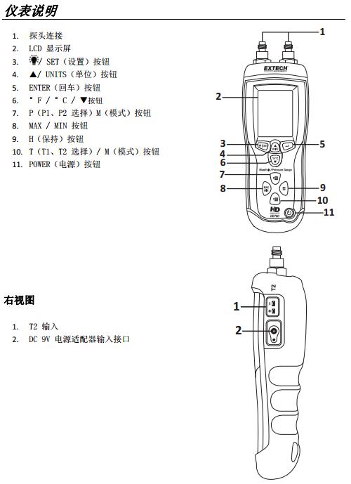 二、EXTECH HD780 儀表圖示 :