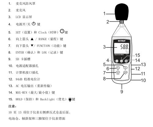 SDL600 型聲級計。該儀表可顯示并存儲聲壓級范圍在 30 至 130 db 之間的讀數(shù)。SDL600 型聲級計符合 ANSI 和 IEC 61672 2 級標準,具有‘A’和‘C’頻率加權(quán)以及 FAST(快速)和 SLOW(慢速)響應時間功能。記錄的數(shù)據(jù)讀數(shù)保存在 SD 卡中,以便傳輸?shù)?PC。該儀表在交付前均經(jīng)過完整測試及校準,只要妥善使用,您便可常年享受其可靠服務。