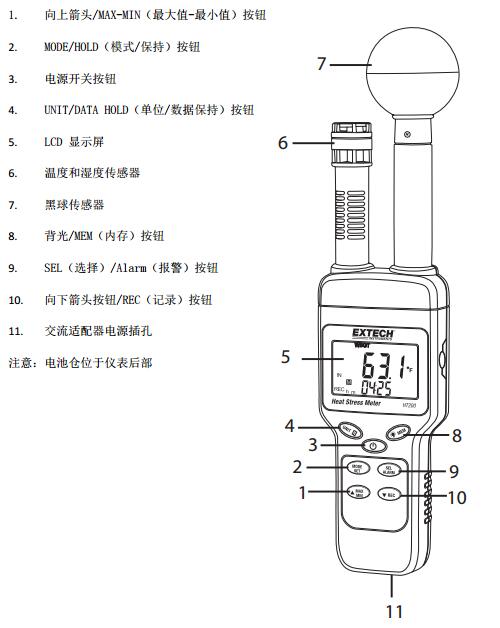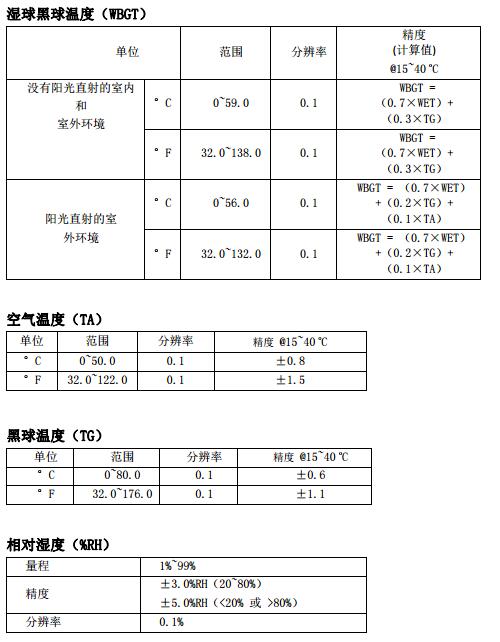 可準(zhǔn)確測量:濕球黑球溫度(WBGT)、黑球溫度(TG)、濕度(%RH)、空氣溫度(TA)、濕球(WET)以及露點(DEW)