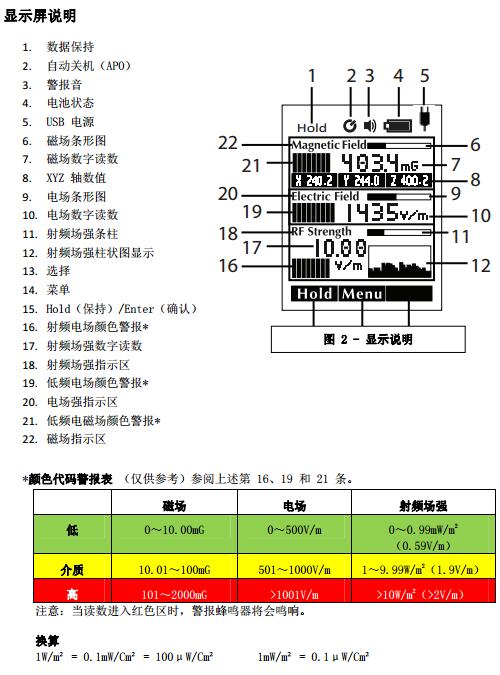 射頻場(chǎng)強(qiáng)單位選項(xiàng):(μW/m2 ~mW/m2) (μW/cm2) (m V/m ~V/m) (mA/m)(dBm)。