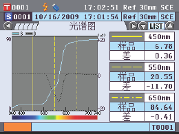 | 色空間 | L*a*b*, L*C*h, Hunter Lab, Yxy, XYZ, Munsell及上述色空間下的色差 (除了Munsell) | |