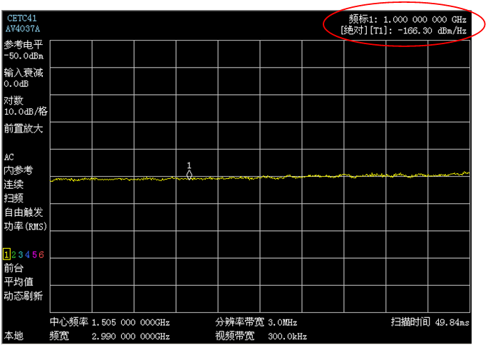 開(kāi)啟內(nèi)部前置放大器,顯示平均噪聲電平(DANL)低至-165dBm/Hz(1GHz處,典型值)。