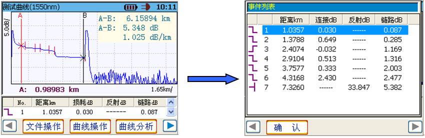 6416能夠快速準確地查找出測試曲線中的事件點或故障點及其位置信息,并以事件表的形式列出線路中所有的事件信息,這對線路維護人員非常有用,既提高測試效率,又無需了解煩瑣的背景知識。