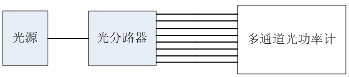將光分路器的輸出接入到多通道光功率計(jì)的各個(gè)通道,光分路器的輸入與光源輸出端連接,設(shè)定光功率計(jì)的測量波長與光源中心波長一致,測試光分路器的各個(gè)通道的光功率的差異。