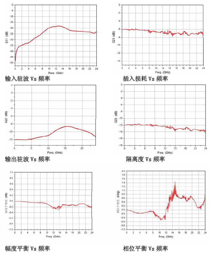 頻率范圍(GHz) | 隔離度 (dB Min) | 回波損耗 (Min) | 插入損耗 (dB Max) | 幅度平衡 (dB) | 相位平衡 (Deg) | 路數(shù) | 輸入功率 (W Max) | 接口形式 |