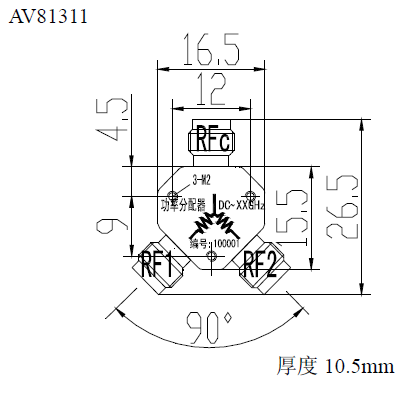 插入損耗7.5dB,幅度平衡±0.5dB,相位平衡±3度