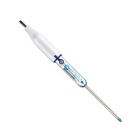使用新電極時(shí),應(yīng)先摘掉頂部的保護(hù)蓋,并檢查整支電極。若發(fā)現(xiàn)因電極內(nèi)部電解液通過(guò)透析膜蒸發(fā)而在電極頭及保護(hù)蓋內(nèi)形成鹽晶,這不影響電極正常使用,表明電極透析膜正常,用清水沖掉即可。在運(yùn)輸途中,電極頭玻璃球內(nèi)可能會(huì)產(chǎn)生氣泡,這時(shí)可以像甩常見的水銀溫度計(jì)那樣輕輕甩動(dòng)電極,即可去除氣泡。如果電極玻璃感應(yīng)膜或透析膜頭比較干燥,可將電極浸泡在HI70300 電極保存液中至少1個(gè)小時(shí),從而使干燥的玻璃感應(yīng)膜和透析膜處保持濕潤(rùn);經(jīng)常浸泡,對(duì)電極是有好處的。