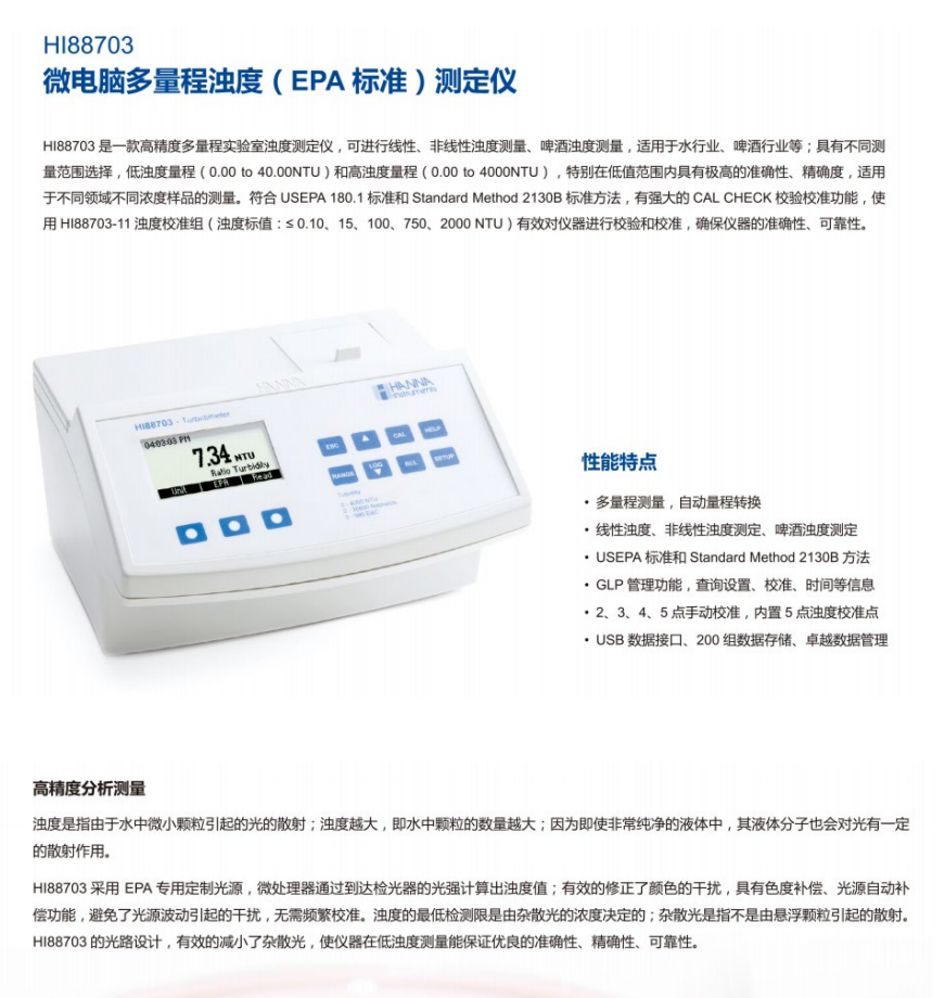 HI88703臺(tái)式濁度儀 實(shí)驗(yàn)室濁度計(jì) 濁度測(cè)定儀 渾濁度儀 哈納HANNA