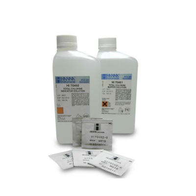 PCA分析控制器專用總氯DPD試劑套裝,內(nèi)含:HI70460 總氯指示劑,規(guī)格:500 mL;HI70461 總氯緩沖溶液,規(guī)格:500 mL;HI70452 DPD試劑,5袋粉劑