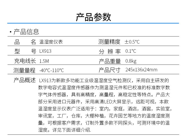 本網(wǎng)頁(yè)所展示的有關(guān)【清邁 LX913工業(yè)溫濕度計(jì)】的信息/圖片/參數(shù)等由的會(huì)員【清邁-深圳柏萊科技有限公司 】提供,由柏萊儀器網(wǎng)-專業(yè)銷售儀器儀表服務(wù)商-深圳柏萊科技有限公司會(huì)員【清邁-深圳柏萊科技有限公司 】自行對(duì)信息/圖片/參數(shù)等的真實(shí)性、準(zhǔn)確性和合法性負(fù)責(zé),本平臺(tái)(本網(wǎng)站)僅提供展示服務(wù),請(qǐng)謹(jǐn)慎交易,因交易而產(chǎn)生的法律關(guān)系及法律糾紛由您自行協(xié)商解決,本平臺(tái)(本網(wǎng)站)對(duì)此不承擔(dān)任何責(zé)任。您在本網(wǎng)頁(yè)可以瀏覽【清邁 LX913工業(yè)溫濕度計(jì)】有關(guān)的信息/圖片/價(jià)格等及提供 【清邁 LX913工業(yè)溫濕度計(jì)】的商家公司簡(jiǎn)介、聯(lián)系方式等信息。