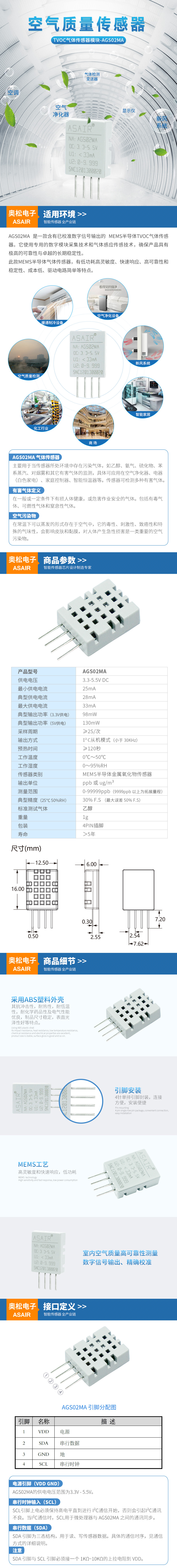AGS02MA 是一款含有已校準(zhǔn)數(shù)字信號輸出的 MEMS半導(dǎo)體智能TVOC 氣體傳感器。它使用專用的數(shù)字模塊采集技術(shù)和氣體感應(yīng)傳感技術(shù),確保產(chǎn)品具有極高的可靠性與卓越的長期穩(wěn)定性。此款 MEMS 氣體傳感器,有低功耗高靈敏度、快速響應(yīng)、高可靠性和穩(wěn)定性、成本低、驅(qū)動電路簡單等特點。