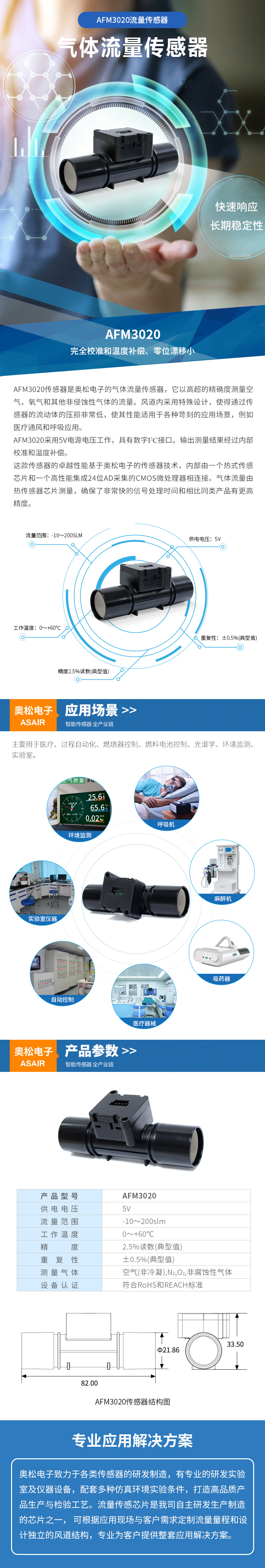 AFM3020傳感器是奧松電子的氣體流量傳感器,它以高超的精確度測(cè)量空氣,氧氣和其他非侵蝕性氣體的流量。風(fēng)道內(nèi)采用特殊設(shè)計(jì),使得通過傳感器的流動(dòng)體的壓損非常低,使其性能適用于各種苛刻的應(yīng)用場(chǎng)景,例如醫(yī)療通風(fēng)和呼吸應(yīng)用。