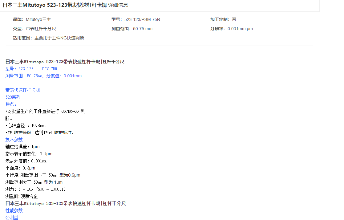 本網(wǎng)頁所展示的有關(guān)【三豐 523-123帶表快速杠桿卡規(guī)|千分尺】的信息/圖片/參數(shù)等由的會(huì)員【日本三豐mitutoyo-深圳柏萊科技有限公司 】提供,由柏萊儀器網(wǎng)-專業(yè)銷售儀器儀表服務(wù)商-深圳柏萊科技有限公司會(huì)員【日本三豐mitutoyo-深圳柏萊科技有限公司 】自行對(duì)信息/圖片/參數(shù)等的真實(shí)性、準(zhǔn)確性和合法性負(fù)責(zé),本平臺(tái)(本網(wǎng)站)僅提供展示服務(wù),請(qǐng)謹(jǐn)慎交易,因交易而產(chǎn)生的法律關(guān)系及法律糾紛由您自行協(xié)商解決,本平臺(tái)(本網(wǎng)站)對(duì)此不承擔(dān)任何責(zé)任。您在本網(wǎng)頁可以瀏覽【三豐 523-123帶表快速杠桿卡規(guī)|千分尺】有關(guān)的信息/圖片/價(jià)格等及提供 【三豐 523-123帶表快速杠桿卡規(guī)|千分尺】的商家公司簡介、聯(lián)系方式等信息。