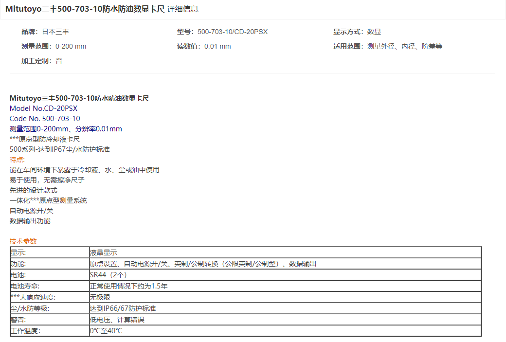 本網(wǎng)頁所展示的有關(guān)【三豐500-703-10防水防油數(shù)顯卡尺】的信息/圖片/參數(shù)等由的會(huì)員【日本三豐mitutoyo-深圳柏萊科技有限公司 】提供,由柏萊儀器網(wǎng)-專業(yè)銷售儀器儀表服務(wù)商-深圳柏萊科技有限公司會(huì)員【日本三豐mitutoyo-深圳柏萊科技有限公司 】自行對(duì)信息/圖片/參數(shù)等的真實(shí)性、準(zhǔn)確性和合法性負(fù)責(zé),本平臺(tái)(本網(wǎng)站)僅提供展示服務(wù),請(qǐng)謹(jǐn)慎交易,因交易而產(chǎn)生的法律關(guān)系及法律糾紛由您自行協(xié)商解決,本平臺(tái)(本網(wǎng)站)對(duì)此不承擔(dān)任何責(zé)任。您在本網(wǎng)頁可以瀏覽【三豐500-703-10防水防油數(shù)顯卡尺】有關(guān)的信息/圖片/價(jià)格等及提供 【三豐500-703-10防水防油數(shù)顯卡尺】的商家公司簡介、聯(lián)系方式等信息。