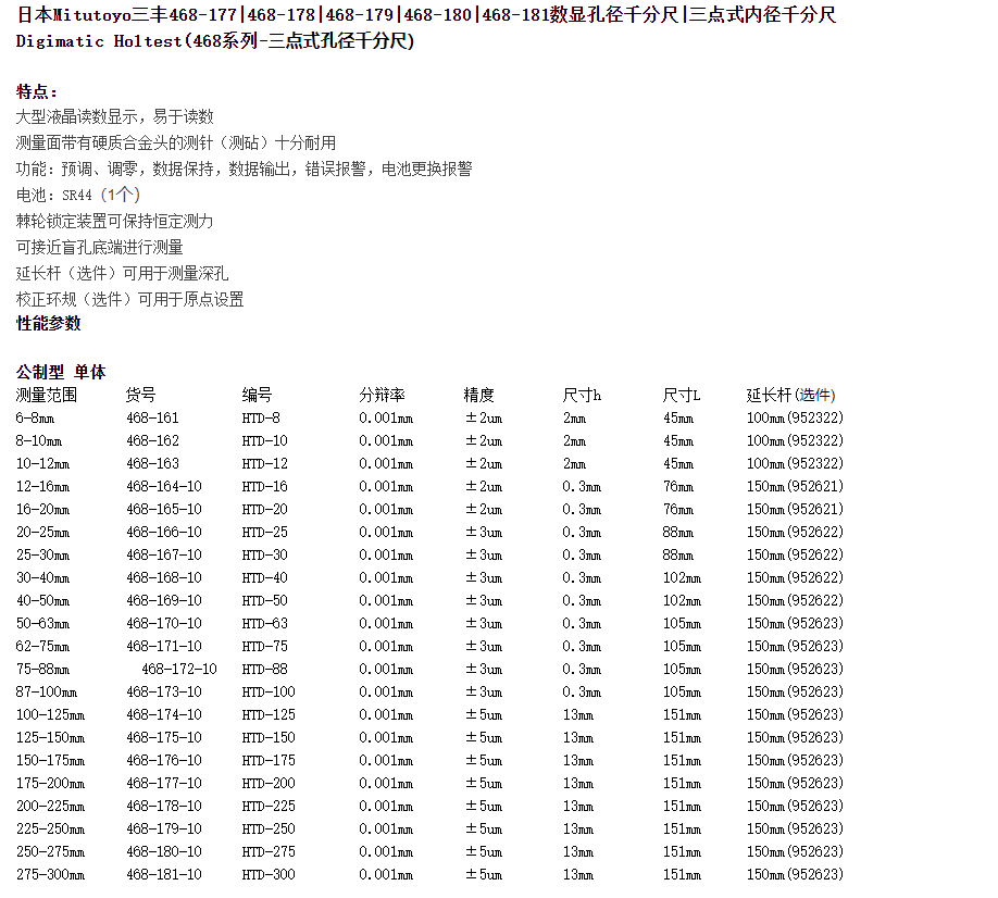 本網(wǎng)頁所展示的有關(guān)【三豐 468-177|468-178|468-179|468-180|468-181千分尺】的信息/圖片/參數(shù)等由的會(huì)員【日本三豐mitutoyo-深圳柏萊科技有限公司 】提供,由柏萊儀器網(wǎng)-專業(yè)銷售儀器儀表服務(wù)商-深圳柏萊科技有限公司會(huì)員【日本三豐mitutoyo-深圳柏萊科技有限公司 】自行對(duì)信息/圖片/參數(shù)等的真實(shí)性、準(zhǔn)確性和合法性負(fù)責(zé),本平臺(tái)(本網(wǎng)站)僅提供展示服務(wù),請(qǐng)謹(jǐn)慎交易,因交易而產(chǎn)生的法律關(guān)系及法律糾紛由您自行協(xié)商解決,本平臺(tái)(本網(wǎng)站)對(duì)此不承擔(dān)任何責(zé)任。您在本網(wǎng)頁可以瀏覽【三豐 468-177|468-178|468-179|468-180|468-181千分尺】有關(guān)的信息/圖片/價(jià)格等及提供 【三豐 468-177|468-178|468-179|468-180|468-181千分尺】的商家公司簡介、聯(lián)系方式等信息。