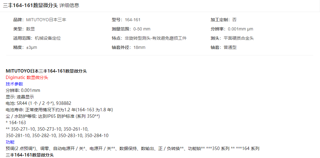 本網(wǎng)頁所展示的有關(guān)【三豐 164-161數(shù)顯微分頭】的信息/圖片/參數(shù)等由的會(huì)員【日本三豐mitutoyo-深圳柏萊科技有限公司 】提供,由柏萊儀器網(wǎng)-專業(yè)銷售儀器儀表服務(wù)商-深圳柏萊科技有限公司會(huì)員【日本三豐mitutoyo-深圳柏萊科技有限公司 】自行對(duì)信息/圖片/參數(shù)等的真實(shí)性、準(zhǔn)確性和合法性負(fù)責(zé),本平臺(tái)(本網(wǎng)站)僅提供展示服務(wù),請(qǐng)謹(jǐn)慎交易,因交易而產(chǎn)生的法律關(guān)系及法律糾紛由您自行協(xié)商解決,本平臺(tái)(本網(wǎng)站)對(duì)此不承擔(dān)任何責(zé)任。您在本網(wǎng)頁可以瀏覽【三豐 164-161數(shù)顯微分頭】有關(guān)的信息/圖片/價(jià)格等及提供 【三豐 164-161數(shù)顯微分頭】的商家公司簡(jiǎn)介、聯(lián)系方式等信息。