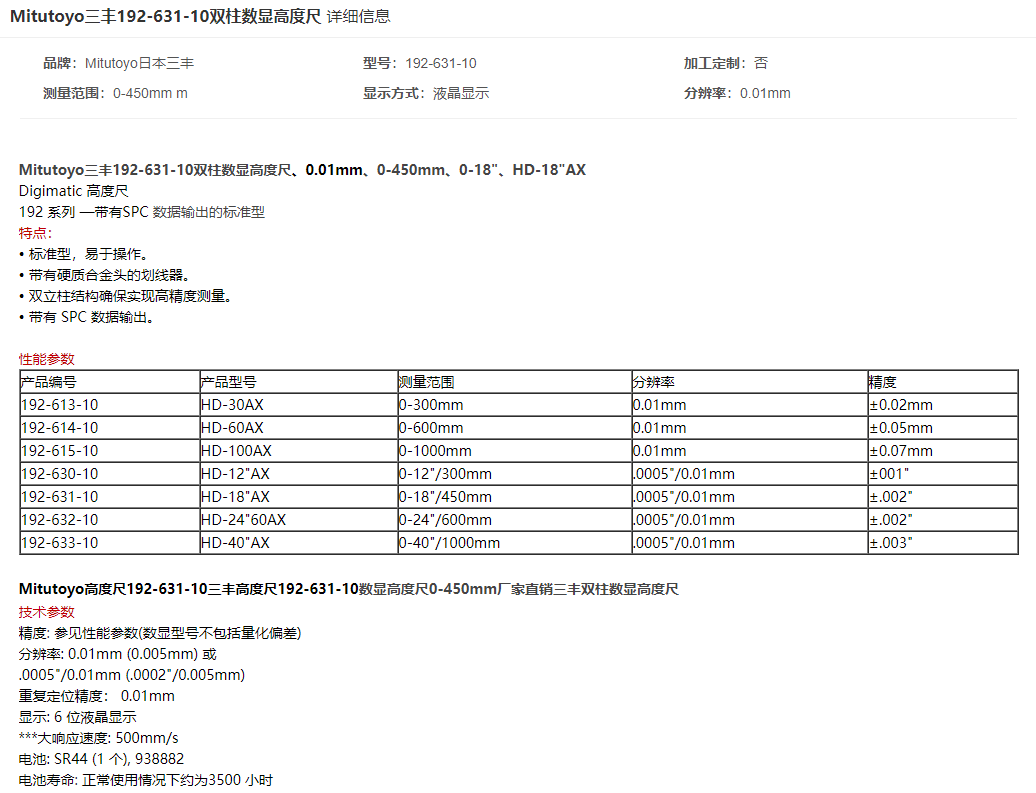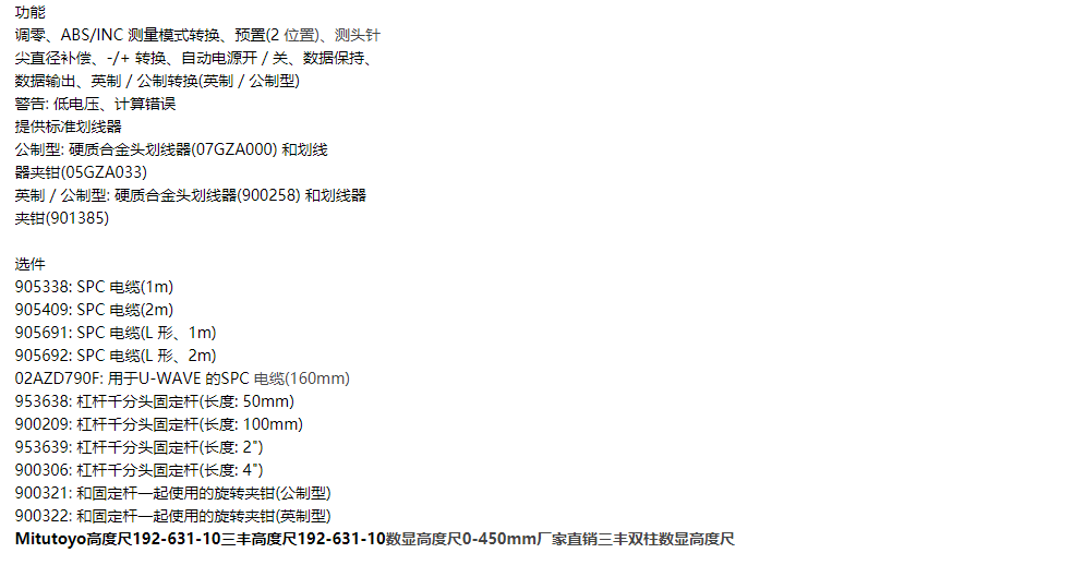 本網頁所展示的有關【三豐 192-631-10雙柱數(shù)顯高度尺】的信息/圖片/參數(shù)等由的會員【日本三豐mitutoyo-深圳柏萊科技有限公司 】提供,由柏萊儀器網-專業(yè)銷售儀器儀表服務商-深圳柏萊科技有限公司會員【日本三豐mitutoyo-深圳柏萊科技有限公司 】自行對信息/圖片/參數(shù)等的真實性、準確性和合法性負責,本平臺(本網站)僅提供展示服務,請謹慎交易,因交易而產生的法律關系及法律糾紛由您自行協(xié)商解決,本平臺(本網站)對此不承擔任何責任。您在本網頁可以瀏覽【三豐 192-631-10雙柱數(shù)顯高度尺】有關的信息/圖片/價格等及提供 【三豐 192-631-10雙柱數(shù)顯高度尺】的商家公司簡介、聯(lián)系方式等信息。