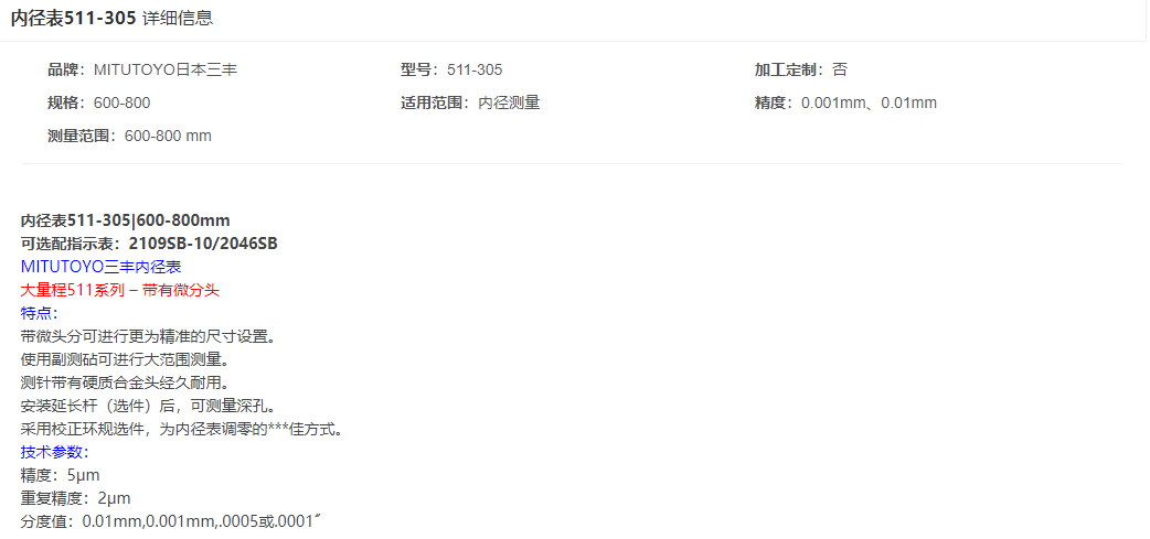 本網(wǎng)頁所展示的有關【三豐 511-305內(nèi)徑表】的信息/圖片/參數(shù)等由的會員【日本三豐mitutoyo-深圳柏萊科技有限公司 】提供,由柏萊儀器網(wǎng)-專業(yè)銷售儀器儀表服務商-深圳柏萊科技有限公司會員【日本三豐mitutoyo-深圳柏萊科技有限公司 】自行對信息/圖片/參數(shù)等的真實性、準確性和合法性負責,本平臺(本網(wǎng)站)僅提供展示服務,請謹慎交易,因交易而產(chǎn)生的法律關系及法律糾紛由您自行協(xié)商解決,本平臺(本網(wǎng)站)對此不承擔任何責任。您在本網(wǎng)頁可以瀏覽【三豐 511-305內(nèi)徑表】有關的信息/圖片/價格等及提供 【三豐 511-305內(nèi)徑表】的商家公司簡介、聯(lián)系方式等信息。