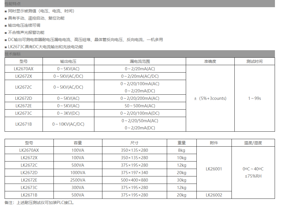 LK267X系列耐電壓測試儀是按照《JJG795-2004耐電壓測試儀檢定規(guī)程》設(shè)計(jì)而成的,具有使用方便,性能穩(wěn)定等特點(diǎn)。
