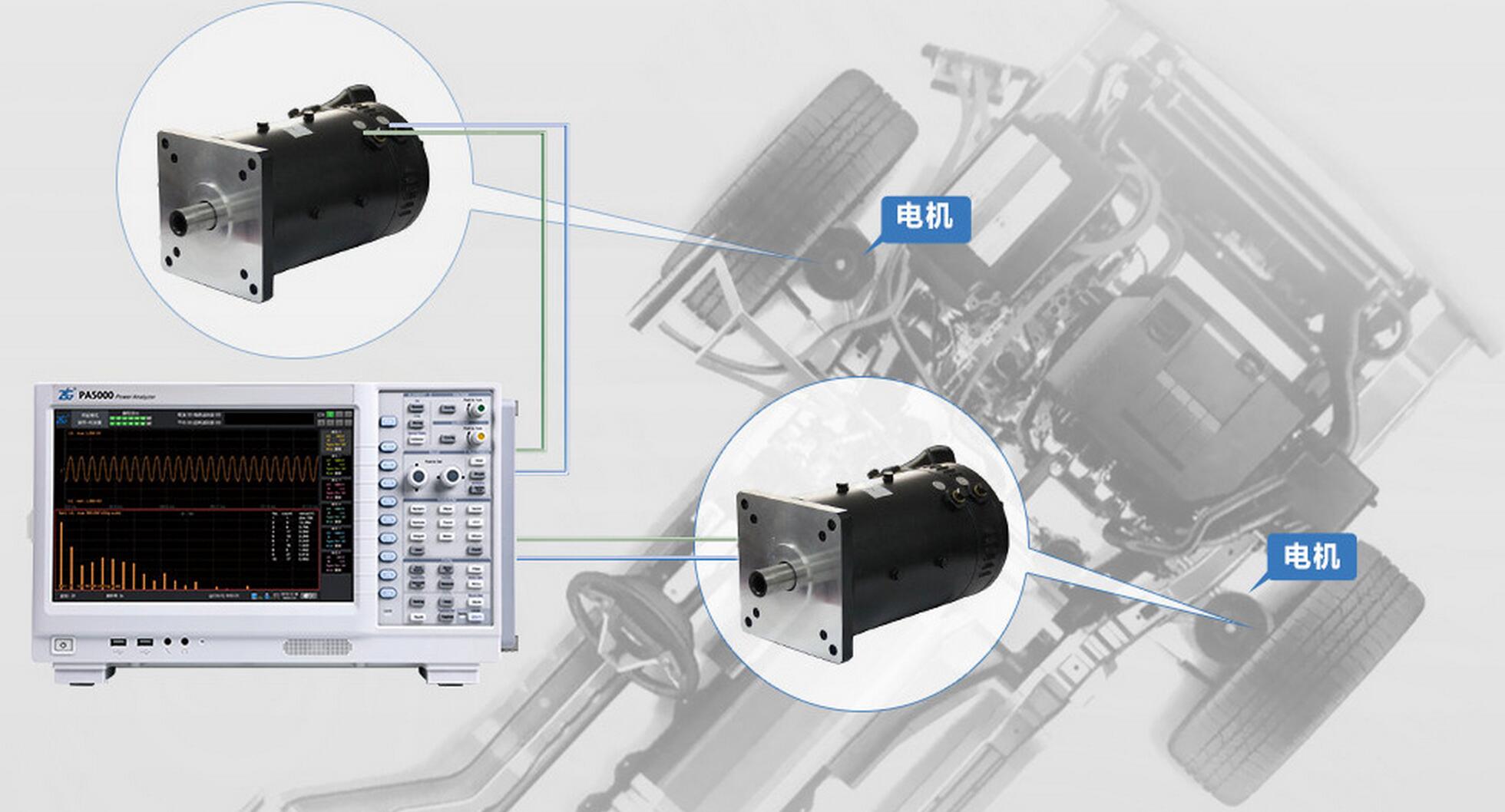 PA5000功率分析儀可在7張功率板卡中任選一張或幾張升級為電機測試板卡(PA8000、PA5000均可以選擇多路電機板卡),功率板卡配合電機板卡可以同時對電動汽車內(nèi)部的變速箱(變頻器)和電機進行聯(lián)調(diào)測試,用戶將可以更加準確的同時測量電機系統(tǒng)的整體性能。