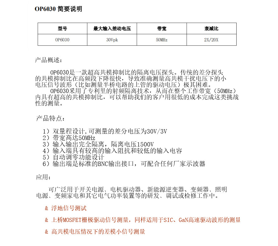 本網(wǎng)頁所展示的有關(guān)【OP6030隔離電壓探頭 超高共模抑制比 30V/50MHz 知用】的信息/圖片/參數(shù)等由的會員【知用-深圳柏萊科技有限公司 】提供,由柏萊儀器網(wǎng)-專業(yè)銷售儀器儀表服務(wù)商-深圳柏萊科技有限公司會員【知用-深圳柏萊科技有限公司 】自行對信息/圖片/參數(shù)等的真實性、準(zhǔn)確性和合法性負(fù)責(zé),本平臺(本網(wǎng)站)僅提供展示服務(wù),請謹(jǐn)慎交易,因交易而產(chǎn)生的法律關(guān)系及法律糾紛由您自行協(xié)商解決,本平臺(本網(wǎng)站)對此不承擔(dān)任何責(zé)任。您在本網(wǎng)頁可以瀏覽【OP6030隔離電壓探頭 超高共模抑制比 30V/50MHz 知用】有關(guān)的信息/圖片/價格等及提供 【OP6030隔離電壓探頭 超高共模抑制比 30V/50MHz 知用】的商家公司簡介、聯(lián)系方式等信息。