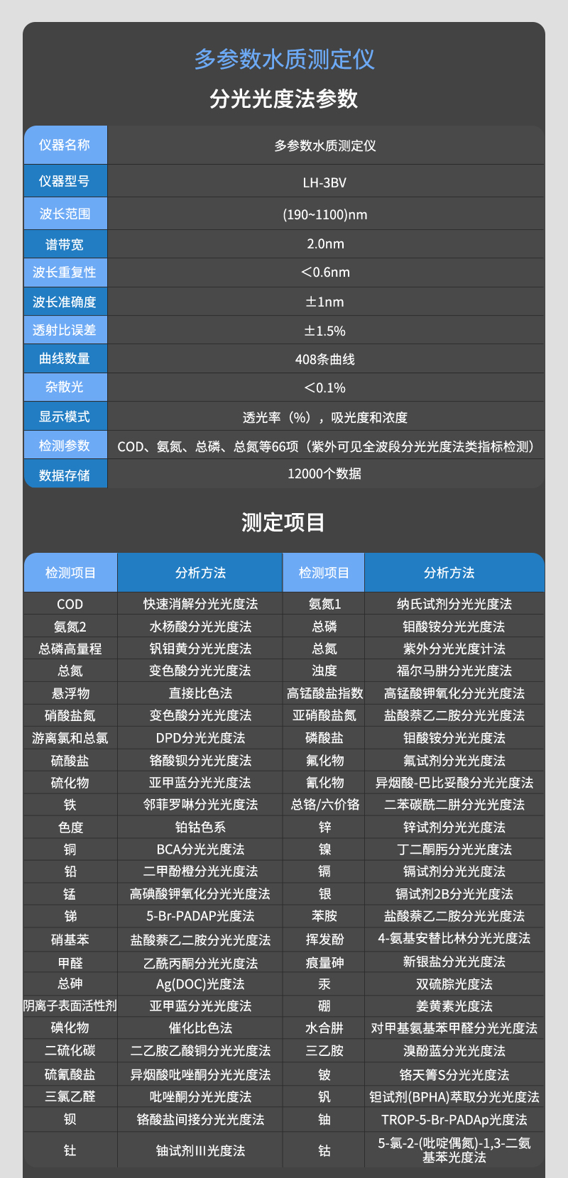 本網(wǎng)頁所展示的有關(guān)【LH-3BV多參數(shù)水質(zhì)分析儀】的信息/圖片/參數(shù)等由的會(huì)員【連華-深圳柏萊科技有限公司 】提供,由柏萊儀器網(wǎng)-專業(yè)銷售儀器儀表服務(wù)商-深圳柏萊科技有限公司會(huì)員【連華-深圳柏萊科技有限公司 】自行對(duì)信息/圖片/參數(shù)等的真實(shí)性、準(zhǔn)確性和合法性負(fù)責(zé),本平臺(tái)(本網(wǎng)站)僅提供展示服務(wù),請(qǐng)謹(jǐn)慎交易,因交易而產(chǎn)生的法律關(guān)系及法律糾紛由您自行協(xié)商解決,本平臺(tái)(本網(wǎng)站)對(duì)此不承擔(dān)任何責(zé)任。您在本網(wǎng)頁可以瀏覽【LH-3BV多參數(shù)水質(zhì)分析儀】有關(guān)的信息/圖片/價(jià)格等及提供 【LH-3BV多參數(shù)水質(zhì)分析儀】的商家公司簡介、聯(lián)系方式等信息。