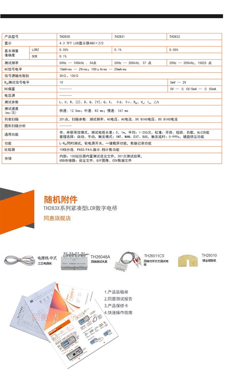 本網(wǎng)頁所展示的有關(guān)【TH2832數(shù)字電橋高精度LCR電容電感電阻測試儀 同惠】的信息/圖片/參數(shù)等由的會(huì)員【同惠電子 -深圳柏萊科技有限公司 】提供,由柏萊儀器網(wǎng)-專業(yè)銷售儀器儀表服務(wù)商-深圳柏萊科技有限公司會(huì)員【同惠電子 -深圳柏萊科技有限公司 】自行對信息/圖片/參數(shù)等的真實(shí)性、準(zhǔn)確性和合法性負(fù)責(zé),本平臺(本網(wǎng)站)僅提供展示服務(wù),請謹(jǐn)慎交易,因交易而產(chǎn)生的法律關(guān)系及法律糾紛由您自行協(xié)商解決,本平臺(本網(wǎng)站)對此不承擔(dān)任何責(zé)任。您在本網(wǎng)頁可以瀏覽【TH2832數(shù)字電橋高精度LCR電容電感電阻測試儀 同惠】有關(guān)的信息/圖片/價(jià)格等及提供 【TH2832數(shù)字電橋高精度LCR電容電感電阻測試儀 同惠】的商家公司簡介、聯(lián)系方式等信息。