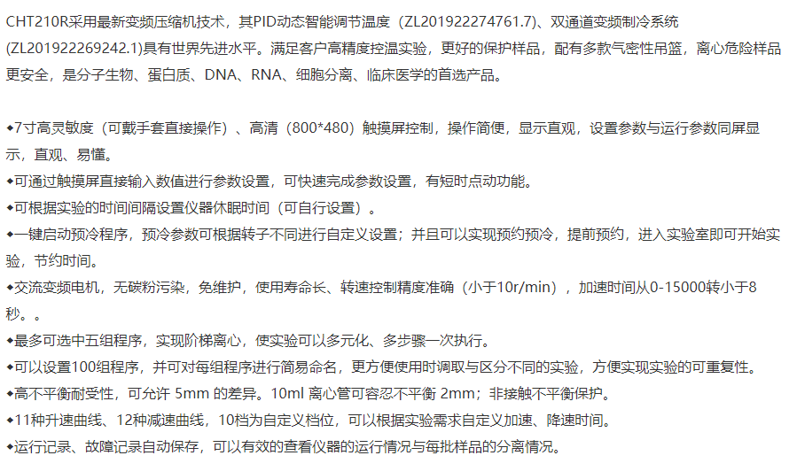 本網頁所展示的有關【大容量高速臺式冷凍離心機 湘儀CHT210R】的信息/圖片/參數等由的會員【湘儀cence-深圳柏萊科技有限公司 】提供,由柏萊儀器網-專業(yè)銷售儀器儀表服務商-深圳柏萊科技有限公司會員【湘儀cence-深圳柏萊科技有限公司 】自行對信息/圖片/參數等的真實性、準確性和合法性負責,本平臺(本網站)僅提供展示服務,請謹慎交易,因交易而產生的法律關系及法律糾紛由您自行協(xié)商解決,本平臺(本網站)對此不承擔任何責任。您在本網頁可以瀏覽【大容量高速臺式冷凍離心機 湘儀CHT210R】有關的信息/圖片/價格等及提供 【大容量高速臺式冷凍離心機 湘儀CHT210R】的商家公司簡介、聯(lián)系方式等信息。