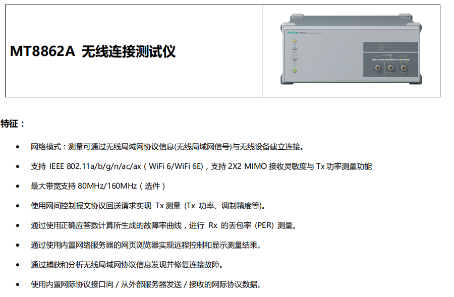 本網(wǎng)頁所展示的有關【無線連接測試儀MT8862A】的信息/圖片/參數(shù)等由的會員【日本安立-深圳柏萊科技有限公司 】提供,由柏萊儀器網(wǎng)-專業(yè)銷售儀器儀表服務商-深圳柏萊科技有限公司會員【日本安立-深圳柏萊科技有限公司 】自行對信息/圖片/參數(shù)等的真實性、準確性和合法性負責,本平臺(本網(wǎng)站)僅提供展示服務,請謹慎交易,因交易而產(chǎn)生的法律關系及法律糾紛由您自行協(xié)商解決,本平臺(本網(wǎng)站)對此不承擔任何責任。您在本網(wǎng)頁可以瀏覽【無線連接測試儀MT8862A】有關的信息/圖片/價格等及提供 【無線連接測試儀MT8862A】的商家公司簡介、聯(lián)系方式等信息。