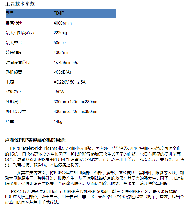 本網(wǎng)頁所展示的有關(guān)【TD4P美容專用PRP注射移植離心機(jī)】的信息/圖片/參數(shù)等由的會員【盧湘儀-深圳柏萊科技有限公司 】提供,由柏萊儀器網(wǎng)-專業(yè)銷售儀器儀表服務(wù)商-深圳柏萊科技有限公司會員【盧湘儀-深圳柏萊科技有限公司 】自行對信息/圖片/參數(shù)等的真實(shí)性、準(zhǔn)確性和合法性負(fù)責(zé),本平臺(本網(wǎng)站)僅提供展示服務(wù),請謹(jǐn)慎交易,因交易而產(chǎn)生的法律關(guān)系及法律糾紛由您自行協(xié)商解決,本平臺(本網(wǎng)站)對此不承擔(dān)任何責(zé)任。您在本網(wǎng)頁可以瀏覽【TD4P美容專用PRP注射移植離心機(jī)】有關(guān)的信息/圖片/價(jià)格等及提供 【TD4P美容專用PRP注射移植離心機(jī)】的商家公司簡介、聯(lián)系方式等信息。