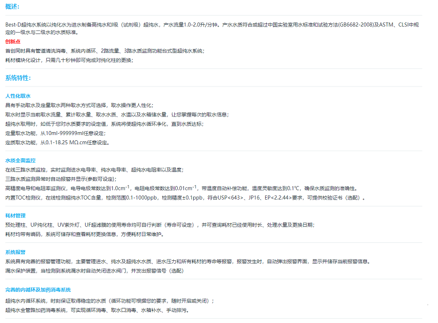 本網(wǎng)頁所展示的有關(guān)【Best-D超純水機】的信息/圖片/參數(shù)等由的會員【上海芷昂-深圳柏萊科技有限公司 】提供,由柏萊儀器網(wǎng)-專業(yè)銷售儀器儀表服務(wù)商-深圳柏萊科技有限公司會員【上海芷昂-深圳柏萊科技有限公司 】自行對信息/圖片/參數(shù)等的真實性、準(zhǔn)確性和合法性負(fù)責(zé),本平臺(本網(wǎng)站)僅提供展示服務(wù),請謹(jǐn)慎交易,因交易而產(chǎn)生的法律關(guān)系及法律糾紛由您自行協(xié)商解決,本平臺(本網(wǎng)站)對此不承擔(dān)任何責(zé)任。您在本網(wǎng)頁可以瀏覽【Best-D超純水機】有關(guān)的信息/圖片/價格等及提供 【Best-D超純水機】的商家公司簡介、聯(lián)系方式等信息。