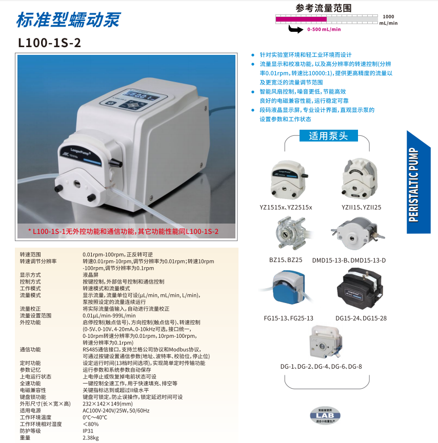 本網(wǎng)頁(yè)所展示的有關(guān)【L100-1S-2標(biāo)準(zhǔn)型蠕動(dòng)泵】的信息/圖片/參數(shù)等由的會(huì)員【蘭格-深圳柏萊科技有限公司 】提供,由柏萊儀器網(wǎng)-專業(yè)銷售儀器儀表服務(wù)商-深圳柏萊科技有限公司會(huì)員【蘭格-深圳柏萊科技有限公司 】自行對(duì)信息/圖片/參數(shù)等的真實(shí)性、準(zhǔn)確性和合法性負(fù)責(zé),本平臺(tái)(本網(wǎng)站)僅提供展示服務(wù),請(qǐng)謹(jǐn)慎交易,因交易而產(chǎn)生的法律關(guān)系及法律糾紛由您自行協(xié)商解決,本平臺(tái)(本網(wǎng)站)對(duì)此不承擔(dān)任何責(zé)任。您在本網(wǎng)頁(yè)可以瀏覽【L100-1S-2標(biāo)準(zhǔn)型蠕動(dòng)泵】有關(guān)的信息/圖片/價(jià)格等及提供 【L100-1S-2標(biāo)準(zhǔn)型蠕動(dòng)泵】的商家公司簡(jiǎn)介、聯(lián)系方式等信息。
