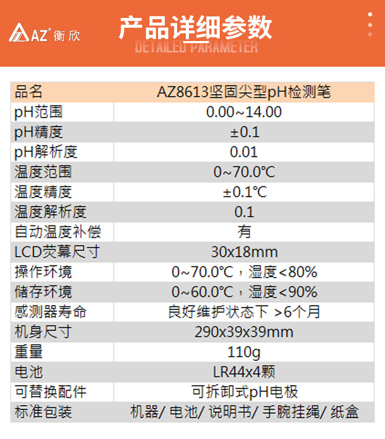 本網(wǎng)頁所展示的有關(guān)【AZ8613 pH便攜式測試筆ph計(jì)食品酸堿度土壤老面面團(tuán)水質(zhì)pH值測試儀 衡欣】的信息/圖片/參數(shù)等由的會員【臺灣衡欣AZ-深圳柏萊科技有限公司 】提供,由柏萊儀器網(wǎng)-專業(yè)銷售儀器儀表服務(wù)商-深圳柏萊科技有限公司會員【臺灣衡欣AZ-深圳柏萊科技有限公司 】自行對信息/圖片/參數(shù)等的真實(shí)性、準(zhǔn)確性和合法性負(fù)責(zé),本平臺(本網(wǎng)站)僅提供展示服務(wù),請謹(jǐn)慎交易,因交易而產(chǎn)生的法律關(guān)系及法律糾紛由您自行協(xié)商解決,本平臺(本網(wǎng)站)對此不承擔(dān)任何責(zé)任。您在本網(wǎng)頁可以瀏覽【AZ8613 pH便攜式測試筆ph計(jì)食品酸堿度土壤老面面團(tuán)水質(zhì)pH值測試儀 衡欣】有關(guān)的信息/圖片/價(jià)格等及提供 【AZ8613 pH便攜式測試筆ph計(jì)食品酸堿度土壤老面面團(tuán)水質(zhì)pH值測試儀 衡欣】的商家公司簡介、聯(lián)系方式等信息。