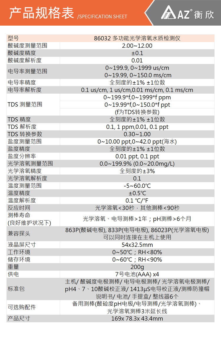 AZ86023熒光法溶氧儀 PH 電導(dǎo)率 鹽