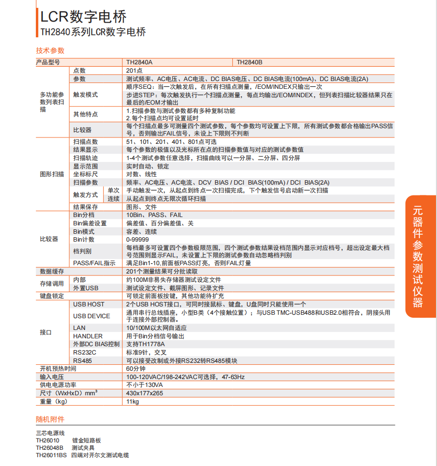 本網頁所展示的有關【TH2840系列LCR數字電橋】的信息/圖片/參數等由的會員【同惠電子 -深圳柏萊科技有限公司 】提供,由柏萊儀器網-專業(yè)銷售儀器儀表服務商-深圳柏萊科技有限公司會員【同惠電子 -深圳柏萊科技有限公司 】自行對信息/圖片/參數等的真實性、準確性和合法性負責,本平臺(本網站)僅提供展示服務,請謹慎交易,因交易而產生的法律關系及法律糾紛由您自行協(xié)商解決,本平臺(本網站)對此不承擔任何責任。您在本網頁可以瀏覽【TH2840系列LCR數字電橋】有關的信息/圖片/價格等及提供 【TH2840系列LCR數字電橋】的商家公司簡介、聯(lián)系方式等信息。