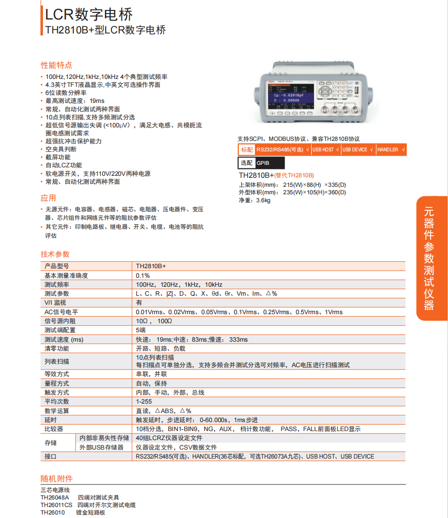本網(wǎng)頁(yè)所展示的有關(guān)【TH2810B+型LCR數(shù)字電橋】的信息/圖片/參數(shù)等由的會(huì)員【同惠電子 -深圳柏萊科技有限公司 】提供,由柏萊儀器網(wǎng)-專(zhuān)業(yè)銷(xiāo)售儀器儀表服務(wù)商-深圳柏萊科技有限公司會(huì)員【同惠電子 -深圳柏萊科技有限公司 】自行對(duì)信息/圖片/參數(shù)等的真實(shí)性、準(zhǔn)確性和合法性負(fù)責(zé),本平臺(tái)(本網(wǎng)站)僅提供展示服務(wù),請(qǐng)謹(jǐn)慎交易,因交易而產(chǎn)生的法律關(guān)系及法律糾紛由您自行協(xié)商解決,本平臺(tái)(本網(wǎng)站)對(duì)此不承擔(dān)任何責(zé)任。您在本網(wǎng)頁(yè)可以瀏覽【TH2810B+型LCR數(shù)字電橋】有關(guān)的信息/圖片/價(jià)格等及提供 【TH2810B+型LCR數(shù)字電橋】的商家公司簡(jiǎn)介、聯(lián)系方式等信息。